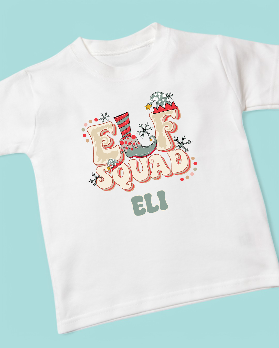Elf Squad Personalised Kids Cotton Christmas T-Shirt