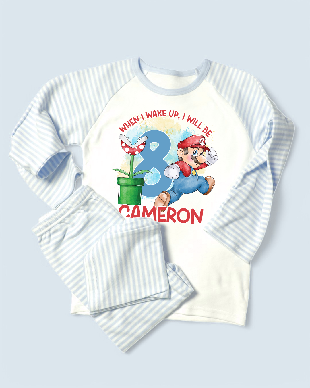 Super Mario Birthday Pyjamas, Personalised Birthday Stripe Pyjamas