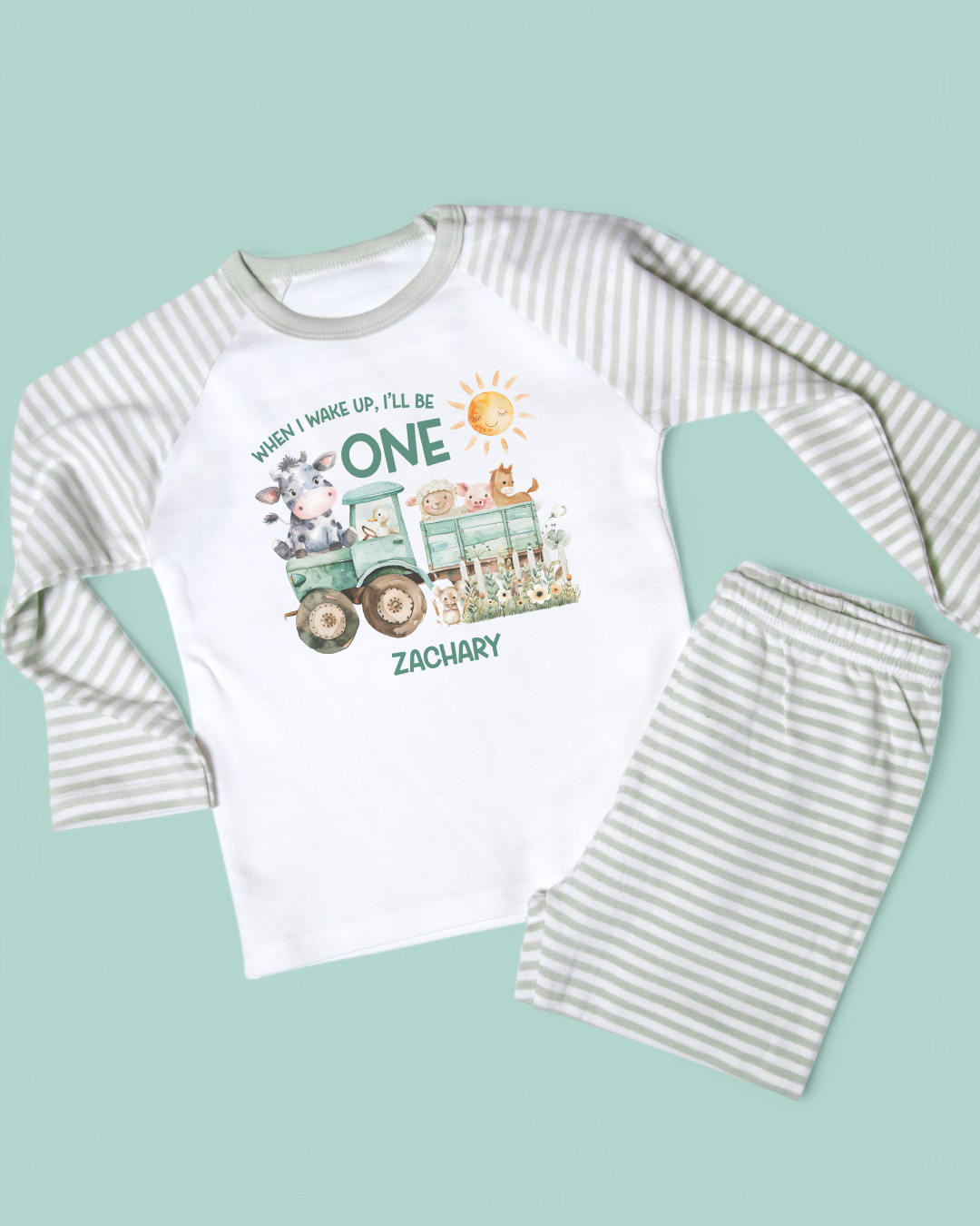 When I Wake Farm Life Birthday Personalised Sage Stripe Pyjamas