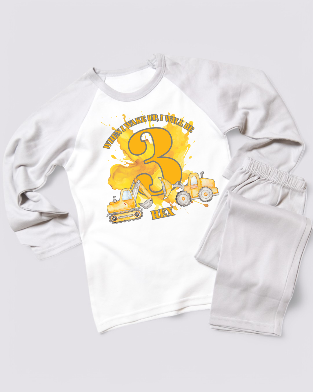 When I Wake Up Construction Digger Printed Personalised Plain PJS