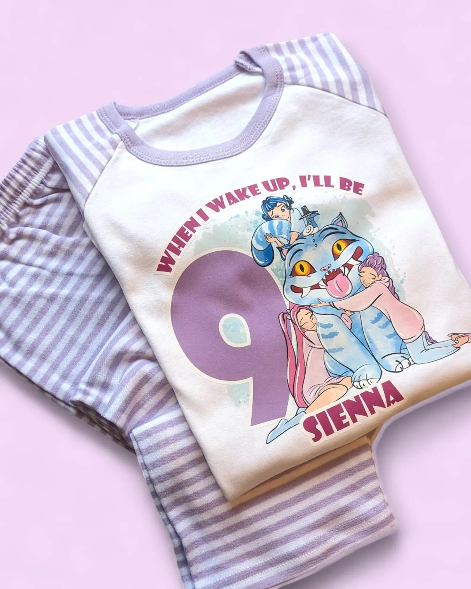 When I Wake Up Derpy Kpop Demon Hunters Birthday Age Personalised Purple Stripe Pyjamas